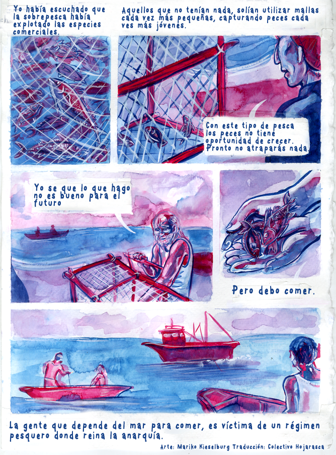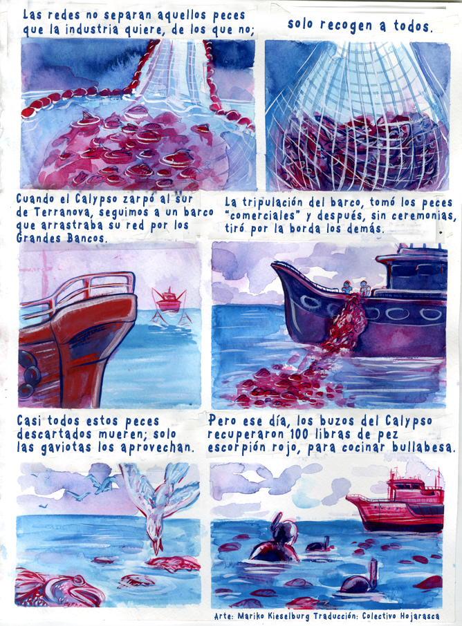 Este es un breve comic sobre Jacques Cousteau, que aborda el grave problema de la industria pesquera. Esta historia forma parte de su obra autobiográfica "El hombre, la orquídea y el pulpo", que más allá de enfocarse en la historia de su vida, cuenta sus experiencias en el mundo y sus perspectivas del mismo. A pesar de haber sido editado en 1998, algunas de las prácticas pesqueras mencionadas en este breve comic siguen siendo permitidas alrededor del mundo, teniendo un alto impacto sobre diferentes comunidades oceánicas y sin duda nos invita a una reflexión que se extiende más allá del mundo marino.